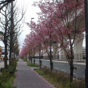 4月9日雨の合間を縫って外に出た時に撮影した写真です。幹線道路の脇にある桜並木,種類はしらないけど桜だと思う,は排気ガスの影響か市街地より早めに咲きます。
