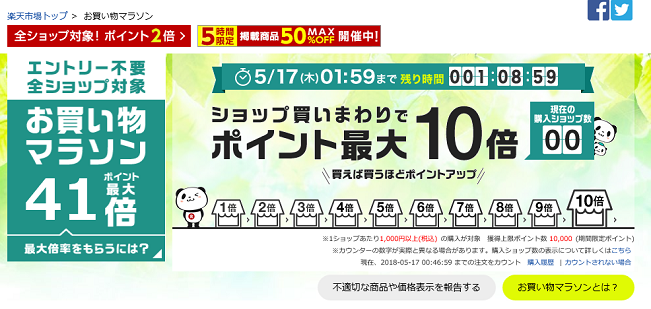 5/12(土)~5/17(木)まで,楽天市場でお買い物マラソンのイベントが行われていた。
